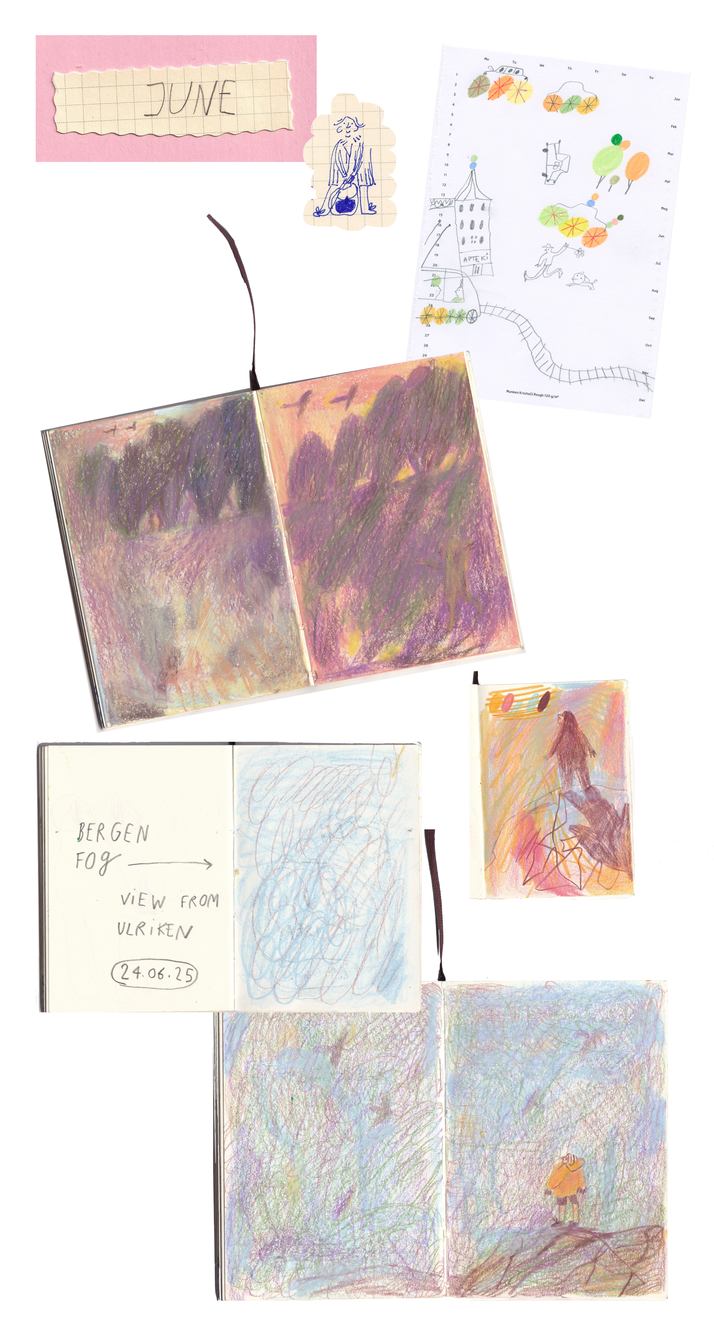TIME was so slow and suddenly I blinked and it was time to go home again! I packed up and went to see my parents in Riga before moving back to Norway. We took a road trip to see my sister, I was like a teenager in the back of the car, getting time to draw and overlay different colours.