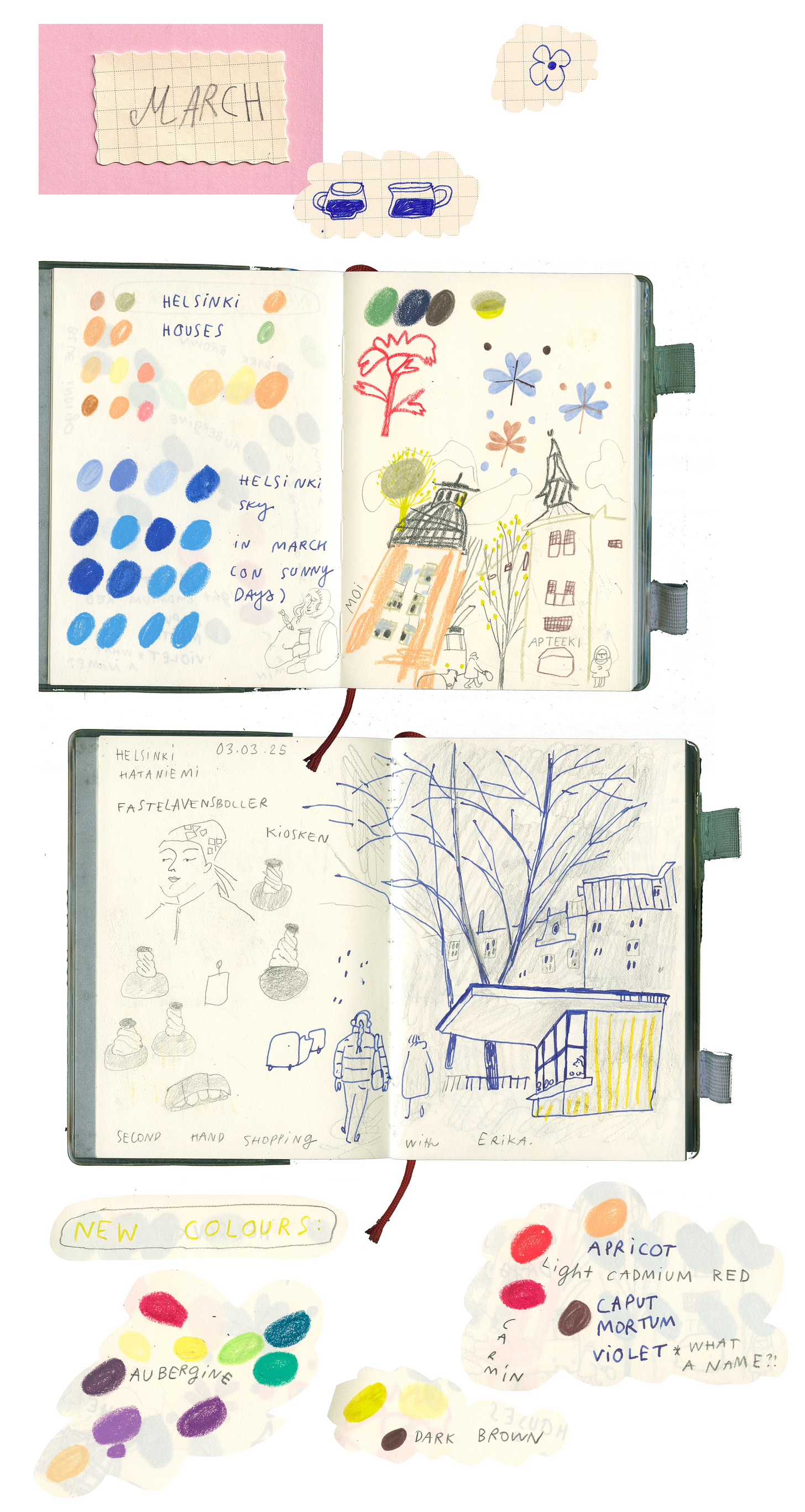 Helsinki is a spectacular city. By this time in March I figured out my favourite places to be, things to do when I had time on the weekends. I would just walk and walk for hours, looking at buildings, be drawing places and then buying new pencils and trying to find a colour to explain the day.